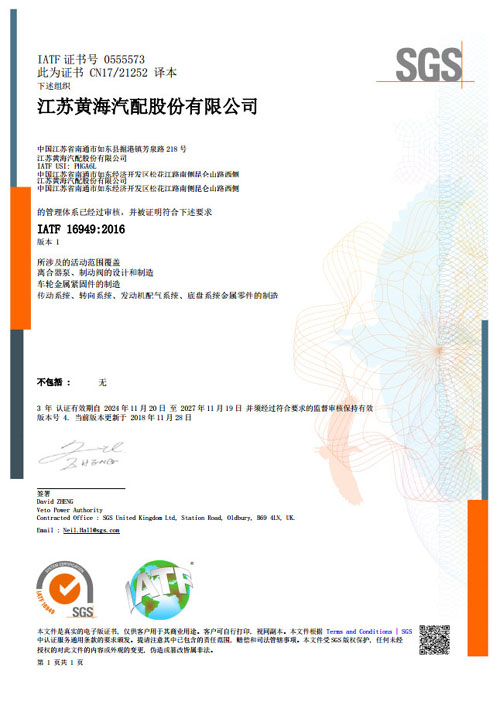 江蘇黃海汽配股份有限公司